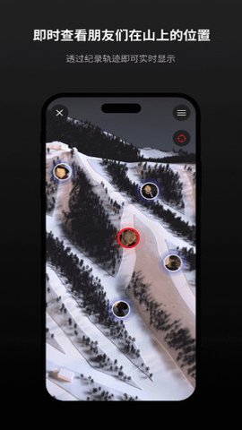 2、不仅如此,滚兽还让用户可以自行队内滑行排行榜,可以在地图上寻找队友位置,让用户可以更好地组队滑雪。