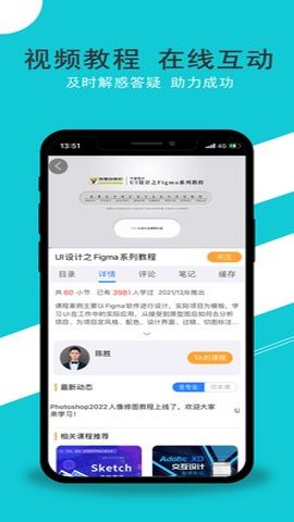 1、在51自学网App中,有着很多免费的视频课程可在线观看,时长适中,比较适合轻人提升自己的专业技能,或者在课后闲暇之余学习自己的喜欢的知识。