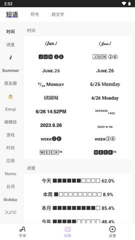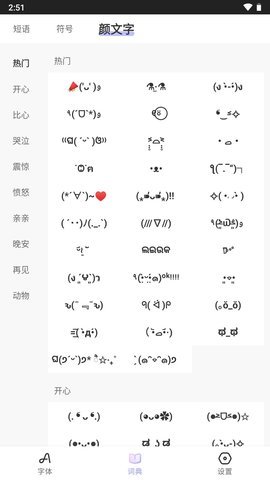 3、花样文字生成器App还自带朋友圈热门文案、常用花式短语、颜文字和小辫子Emoji等,方便用户快速输入。