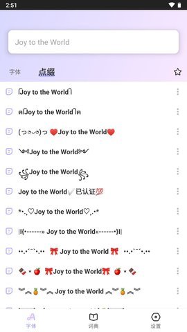 2、这款应用程序是一款非常实用的花样字体生成工具,让用户可以在社交和聊天中展现出自己的个性和创意。