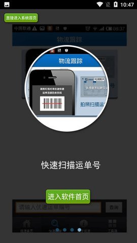 4、用户只需直接输单号(也可以用摄像头扫描条码),不用选快递,就可以快速查询快递信息。
