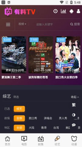 2、影视分区是有料盒子App提供的多样化的类型分区,各种影视类型应有尽有,供用户浏览。