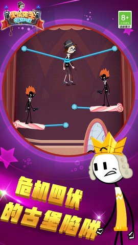 2、同时还需要灵活躲避各种陷阱和机关,切断承重物的绳子,克服重重危机,使火柴先生安全地落在地面上逃离密室。