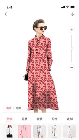 2、使用小妙招修复已知BUG,手指拖动调节花型位置,按“+”与“-”调整花型大小,让虚拟样衣呈现最佳效果。