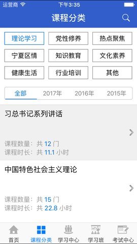 2、学习中心中的“选课中心”按照“课程大类--二级分类--课程专题--课程”的课程架构体系展示系统中所有的网络课程,方便学员进行选课和学习。