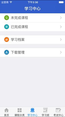 3、学习中心是学员完成选课、学习、考试、测评、查询档案、完善个人信息等一系列网络培训相关操作的界面,使学员的学习过程更加方便快捷。