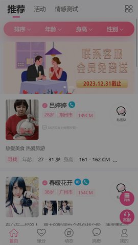 3、不论是线上畅聊还是线下约会,遇到你都可以满足用户的需求和喜好。