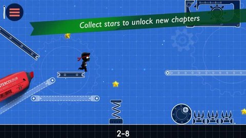 2、游戏讲述了一个设计家在工作台上睡着后变成了设计纸上的小黑人,然后遭到了画笔的追杀。