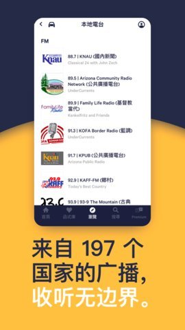 3、不论您身在何处,您都可以通过该应用收听全球各地的AM/FM电台。