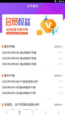 2、切换到【会员】页面后,用户可以享受专属的会员权益,如蛋价早午报、蛋价趋势分析等。