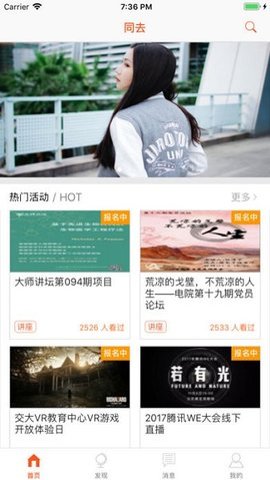 4、同去网成为了校内最新热门校园活动信息的首发平台,用户可以通过同去账号或交大校内账号jaccount登录,方便快捷地参与报名。