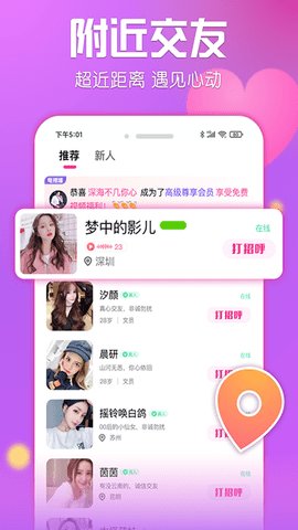 2、它提供了颜值专区、动态心情、陌声聊天、同城交友约会等多种功能,让用户能够更好地认识附近的人,建立深入的。