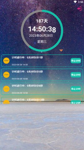 2、这个应用还具有打卡功能,用户可以点击倒三角图标来添加倒计时,非常方便实用。