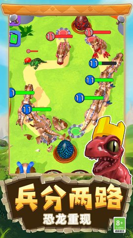 1、为了在战斗中取得胜利,玩家需要运用自己的策略来合并恐龙。