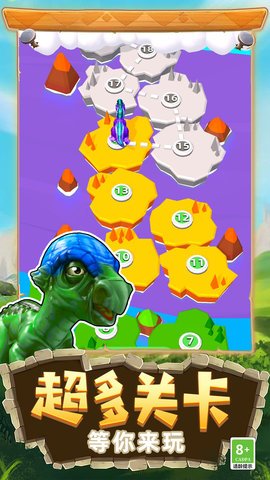 4、恐龙狩猎模拟器是一款合成玩法的闯关挑战游戏,玩家可以将两个相同的恐龙合成为更强大的恐龙,成为最强大和最具战略性的恐龙。