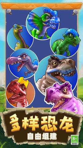 2、游戏中有许多精彩的内容等待着玩家去发掘,其中包括恐龙的自由融合和打造全新组合,通过不断的冒险和升级来提升自己的恐龙军团。