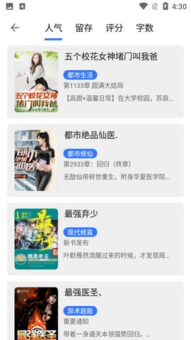 3、你可以通过热榜快速找到最受欢迎的小说,不再错过任何精彩的阅读内容。