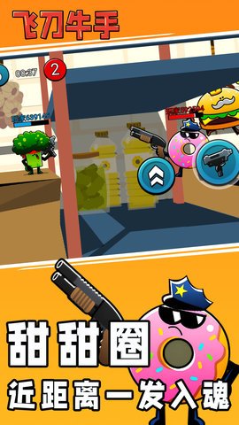 飞刀牛手是一款休闲欢乐向的水果乱斗竞技游戏。游戏中有各种角色,包括蔬菜、食物等,他们将在2v2对决中展开激烈的战斗。每个角色都有独特的技巧,比如扔飞刀、甩球棍等等,玩家需要运用这些技巧来击败对手,达到指定的击败人数才能获得胜利。在混乱的格斗比赛中,玩家可以展示自己的操作技巧。