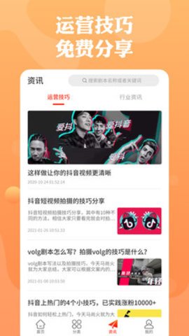 1、此外还有各种免费的剧本供你使用,你还可以在这里学习制作和运营好短视频。