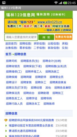 2、无论是招聘求职、出租房子、找临时工还是招聘司机,都可以在锡林123找到合适的信息。