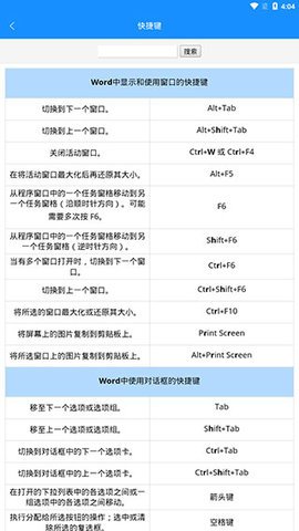2、此外该应用还提供了快捷键和Word使用技巧的查询功能,帮助用户更加高效地进行工作。