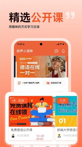 欧声小语种是一款专为小语种学习者打造的语言学习app。提供丰富多样的小语种学习课程,涵盖俄语、德语、法语、葡萄牙语、日语、荷兰语等多种语言,满足了广大用户对小语种学习的需求,用户可以在学习平台上轻松获取各种小语种学习资料,不仅方便快捷,还能够有效利用自己的学习。