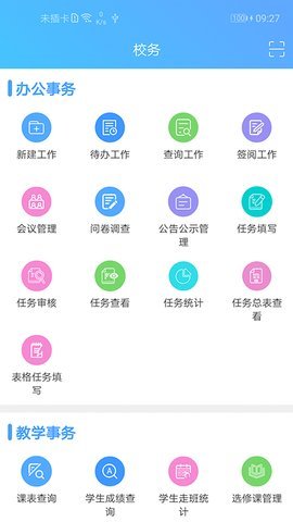 2、至道智慧校园ERP还提供了办公事务的管理功能,包括新建工作、待办工作、查询工作、签阅工作、会议管理、问卷调查、公告公示管理、任务填写、任务审核、任务查看、任务统计、任务总表查看和表格任务填写等。