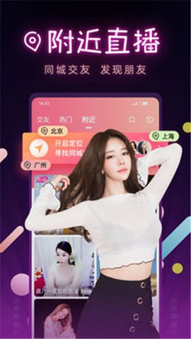 1、九秀直播尊享版App可以让用户轻松找到附近的主播,不管是想要看直播还是想要结识新朋友,都能够在这里找到心仪的对象。