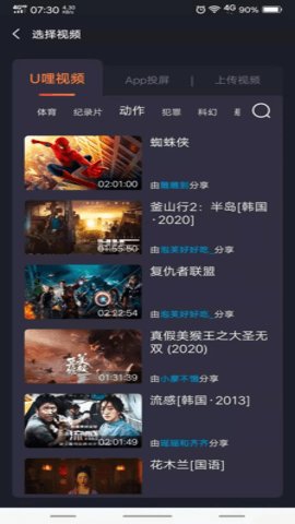 3、如果你想将其他应用的视频投屏到U哩上观看,U哩也提供了APP投屏功能。