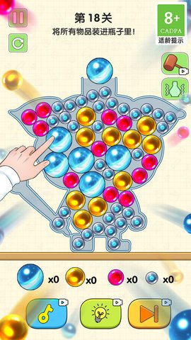 1、玩家需要考虑小球的形状、大小和数量,以及瓶子的空间限制,找到最佳的装球方式。