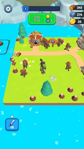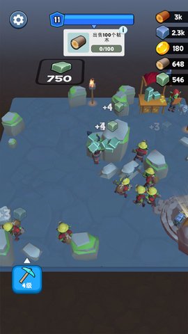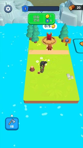 1、一开始,玩家需要砍伐树木来获取资源,当达到一定数量时,就可以解锁新的人物和地图等内容。