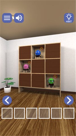 3、右转三次观察柜子,可以看到柜子上已经提示了字母“LU”和“US”,中间输入“MINO”得到扇子的提示:“人人手手人”。
