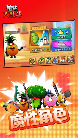 2、加入游戏的可爱美食形象,看看谁才能成为美食界的霸主吧!植物大乱斗免广告是一款非常有趣的游戏。