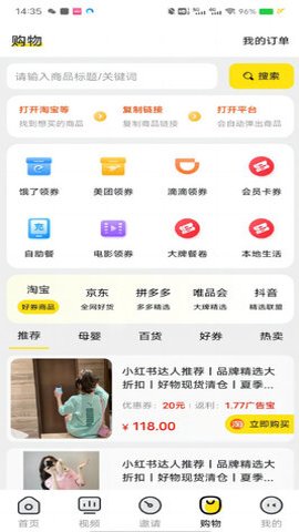 4、用户可以通过该软件轻松发现全网各大电商平台的优惠活动,实现省时省力的购物,并享受到优惠的价格,为用户提供更快、更省、更放心的购物体验。