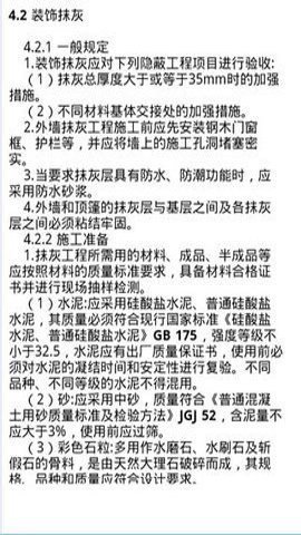 2、建筑土建施工技术规范App是一款功能丰富的应用,它不仅可以帮助用户阅读各种建筑施工资料,还提供了多种便捷的功能,如可编辑目录和收藏夹、施工照片的永久保存、工地画板功能等。