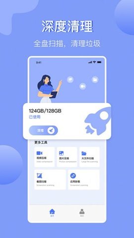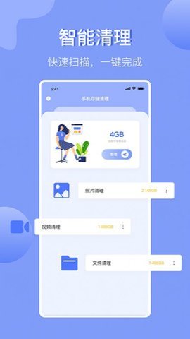 1、此外该应用还能进行智能清理,帮助用户使用各种清理工具,一键释放手机内存,轻松清理占用内存的大文件,解决手机卡顿和存储空间不足等。