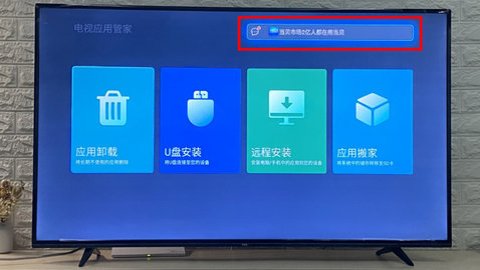 2、用户可以在欢视助手中搜索“电视应用管家”,并点击右上角的消息框,即可享受全网智能电视应用和游戏的一站式免费下载服务。