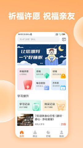 2、通过学习课程和进行静坐,用户可以使内心安宁,获得心灵的寄托,减少内心的烦恼。