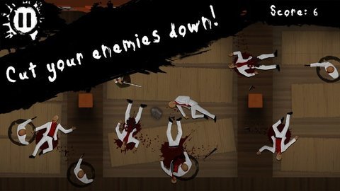 1、暴徒斩杀类似于水果忍者的解压小游戏,采用上帝视角,玩家需要操作一把武士刀来解决敌人。