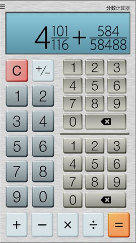 1、除了基本的分数输入功能外,该应用程序还具有分数的加、减、乘、除运算功能。