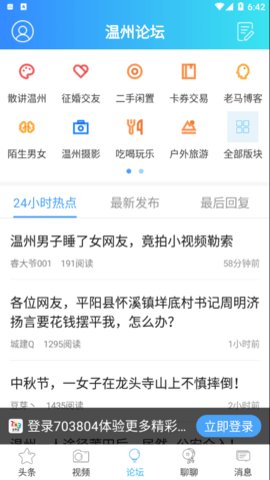 5、此外它还提供了新闻、视频、论坛、聊聊、消息等多个功能板块,帮助用户更智慧有趣地生活。