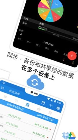 1、Bluecoins高级版App还支持在线同步数据到Google云端硬盘或Dropbox,以及从本地导入数据和多种货币。