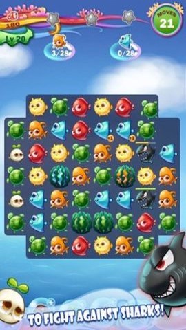 小鱼爱消除是一款非常有趣的游戏。游戏的规则非常简单,只需要将相同的小鱼通过移动凑成三个或三个以上就可以消除。我们可以连接三个相同的小鱼,也可以连接四个或五个来产生特效。特效是在一定基础上才能使用的,这是游戏规则的一部分。背景音乐听起来很欢快,很喜庆,给人一种轻松愉快的感觉。
