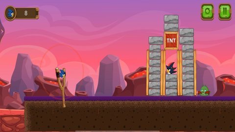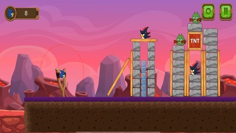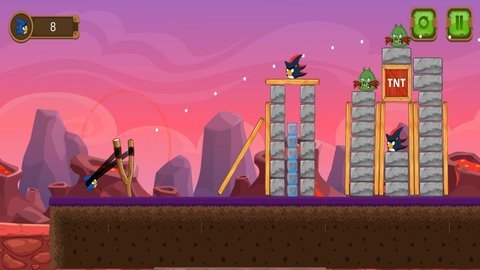 3、游戏的画风清新,玩家可以使用各种工具,轻松发射小鸟,破坏面前的建筑并打败邪恶的敌人。