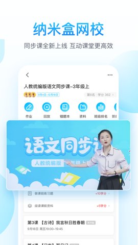 2、此外纳米盒还提供小学掌上视频教辅,比辅导书更有效,还有网校课本服务测评,内设权威的专业级口语评测系统,可以高效提升孩子的口语水平。