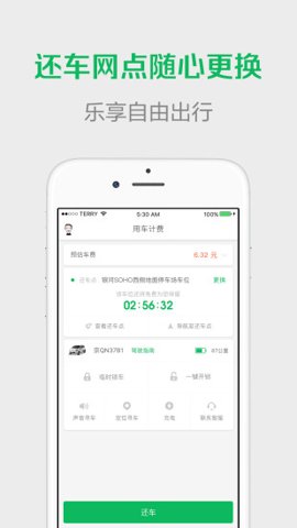 5、如果您想换车或还车,只需在应用中点击一下,就可以随时随地进行操作。