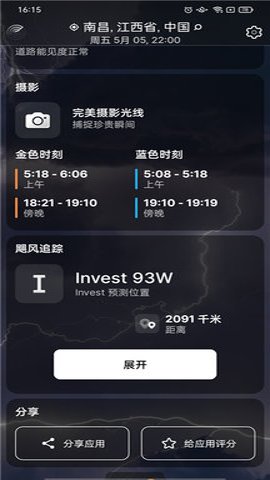 3、如果你是一位摄影爱好者,那么WeatherLive还提供了摄影时刻功能。