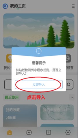 3、当用户进入软件首页时,软件会自动识别并提示导入口令。