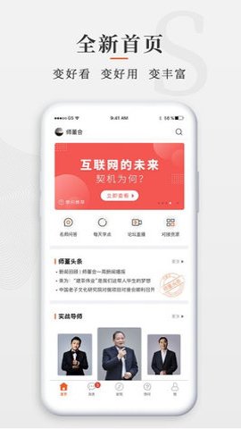 师董会是一款应用,是北京华泰益合文化发展有限推出的视频直播类的移动在线教育产品。它是国内领先的具有互动、分享、视频直播等功能的在线互动式教育APP。v4版本每天仅需30分钟,随时播放学习,推出新版本优化页面已知,提升性能和稳定性,使用更加流畅。