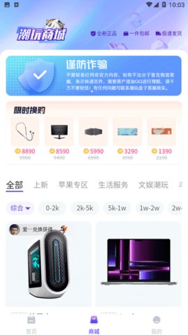 3、这里有各种各样的商品选择,包括酷炫的电竞外设,正品保障的3C数码,趣味可爱的潮玩手办,科技新品的智能家居,以及品种齐全的家居百货。
